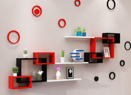 免打孔牆上格子置物架 / 電視背景裝飾 ( 紅黑拼色 )