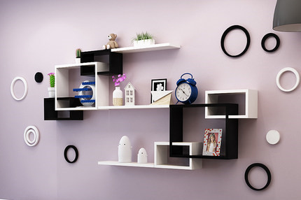 免打孔牆上格子置物架 / 電視背景裝飾 ( 黑白拼色 )