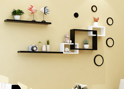 免打孔牆上格子置物架 / 電視背景裝飾 ( 黑白拼色 )
