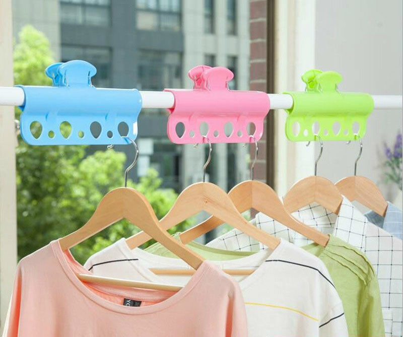 描述 : 可固定放予衣杆 , 有多個掛圈 , 可掛多件衣服 , 方便通風 .